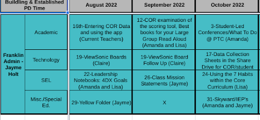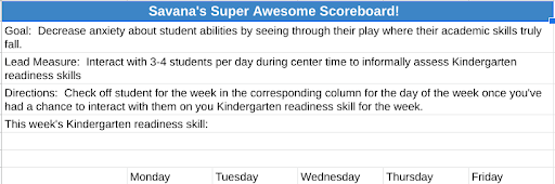 During that time they set individual goals using a modified 4DX model found on the Leader in Me website